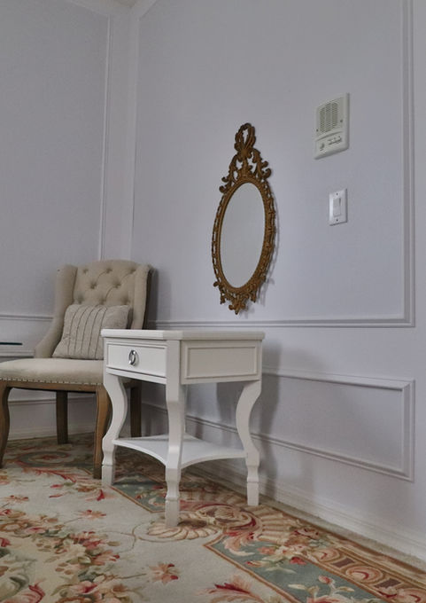 Coordinating colors in the bedroom and bathroom will make anyone feel balanced and truly comfortable. Baby blue paint with a splash of gold were a perfect match for this project! Residence located in Orlando, Florida
